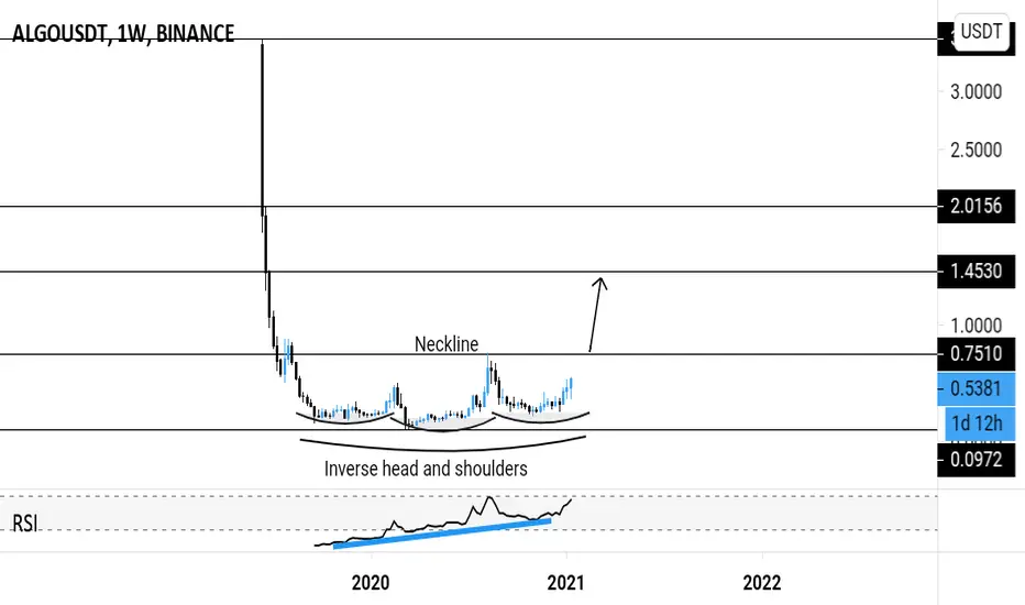 ALGOUSDT is printing the inverse head and shoulders reversal pattern on the weekly timeframe.