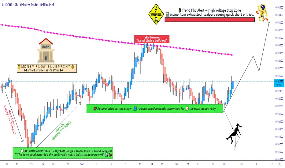 Buckle up, traders! It's time to pull off a slick market heist with the "Thief Strategy" on AUD/CHF. We're layering up entries like a mastermind stacking cash, aiming for a high-voltage profit zone while dodging traps. Let’s break it down with style and precision! 😎