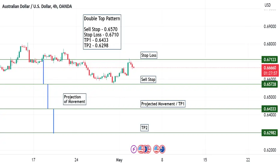 Double top pattern forming on the AUDUSD chart and a trade plan is published on how to take the trade