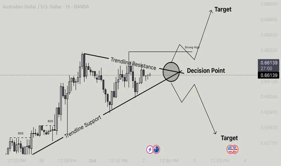 Price is currently consolidating above trendline support and nearing a confluence zone of trendline resistance and a major Decision Point. Structure remains bullish after multiple BOS (Break of Structure), but momentum is slowing.