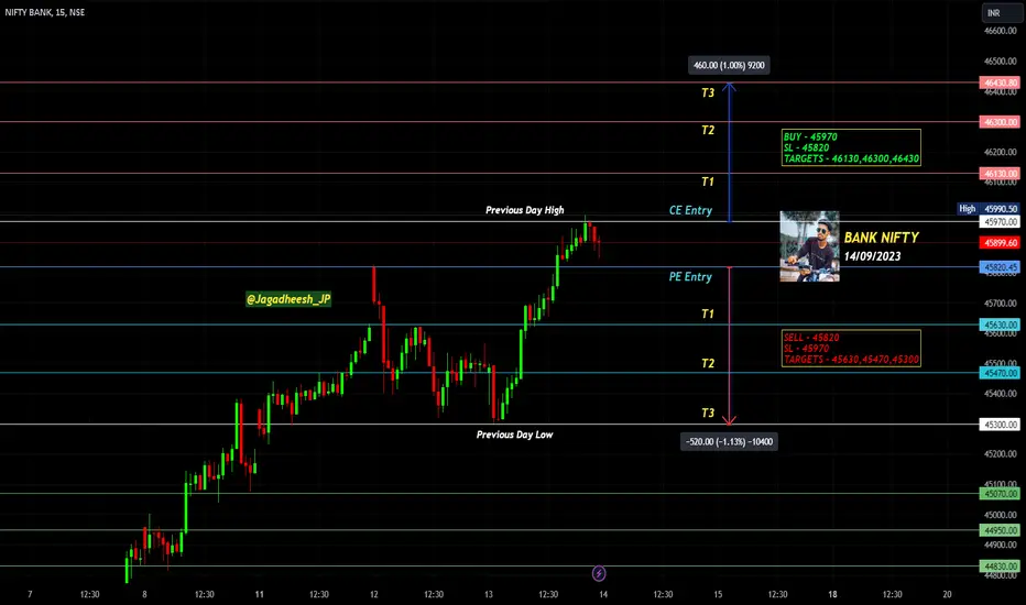 I am sharing BANK NIFTY levels this levels acts as important support & resistance for intraday. if you want to trade with this levels wait for 15 min Candle closing above that levels. You can trade with breakout and reversal both.