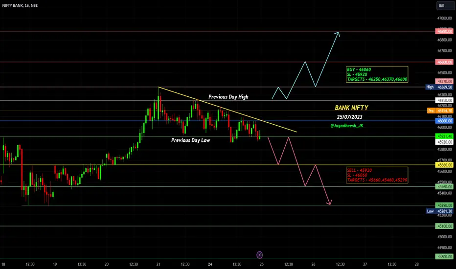 I am sharing BANK NIFTY levels this levels acts as important support & resistance for intraday. if you want to trade with this levels wait for 15 min Candle closing above that levels. You can trade with breakout and reversal both.