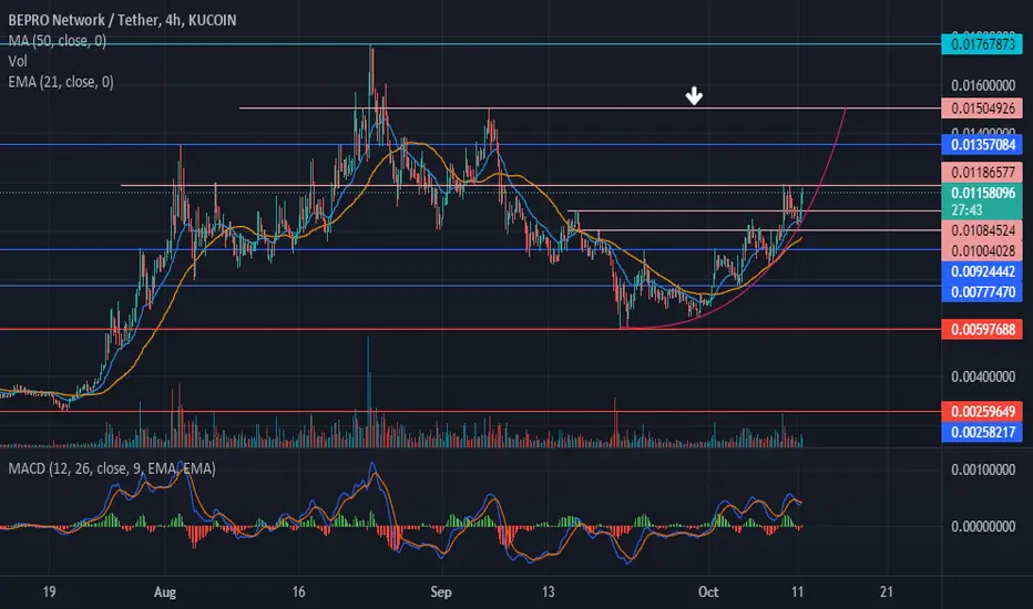 Continuation on this current price movement could get bepro to a major resistance retest at 0.0150 and then it wont be long to launch onto 0.020