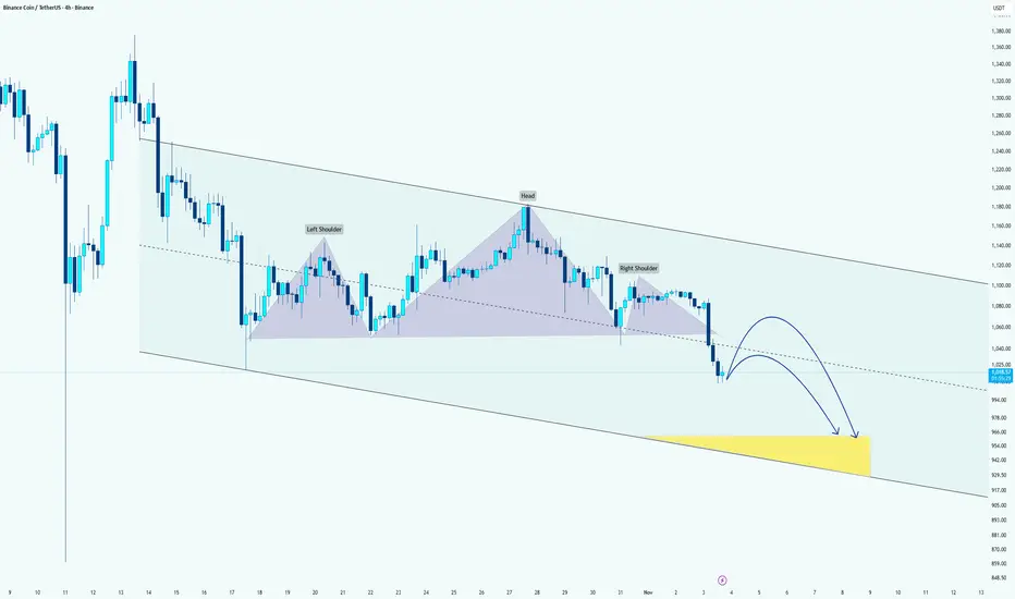 BNB Forming Head & Shoulders Breakdown Within Descending Channel