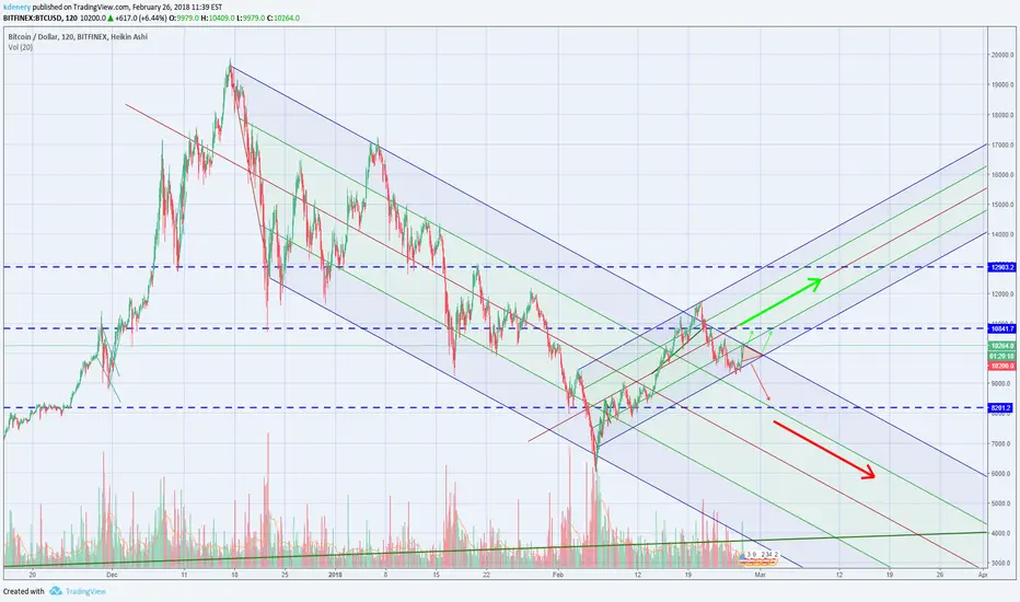 The past few days we've (hopefully) been forming a bullish channel to break us out of our downward one, the price is currently at the crucial crossing point so the next day or so will be extremely decisive and influential for the next couple months of price actions. Check out my idea linked below for a lot more details and a closer look at our short-term action, but basically, however we breakout of the pennant/triangle i've drawn will define our movement for a while.