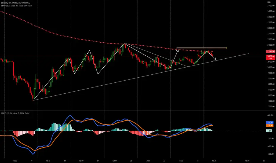 Short Term Technical View: On daily time frame BTC is trading below 200&50 simple moving averages and trading between $20,800-$21,100 ranges.BTC is made low 19,700 and now consolidating within a range. Yesterday it made high near $21,200 and then it continue to decline from 200 simple moving averages. Bitcoin is struggling to gain momentum above $21,300.