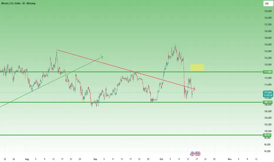 • The price reversed before the 118K resistance, forming what can now be viewed as a lower high.