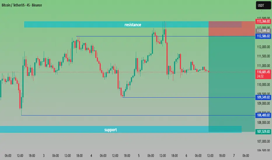 Senario Bullish 🟢🚀 – Jika BTC menembusi atas 112,586 USDT, momentum boleh mendorong harga ke arah 113,500+ USDT.