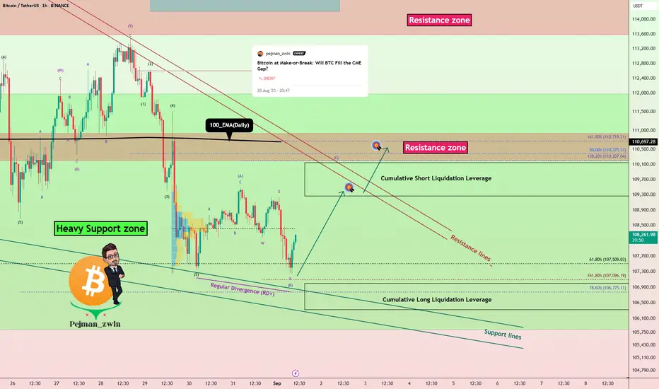 I expect that if Bitcoin is going to break the Heavy Support zone($111,980-$105,820), it will attack the Resistance zone($110,920-$110,200) and the Resistance lines first. Do you agree with me!?
