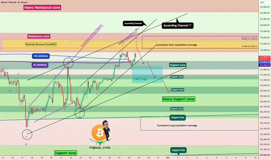 At the moment, Bitcoin is moving near a Resistance zone($118,740-$115,740), the Potential Reversal Zone(PRZ)[$117,700-$116,080], and Cumulative Short Liquidation Leverage($118,224-$116,281).