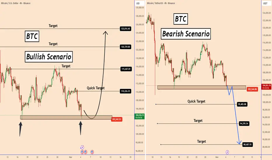 Yesterday BTC respected the bearish scenario. After the price broke down the support zone near $103,500 the price declined aggressively to our first target near to $99480