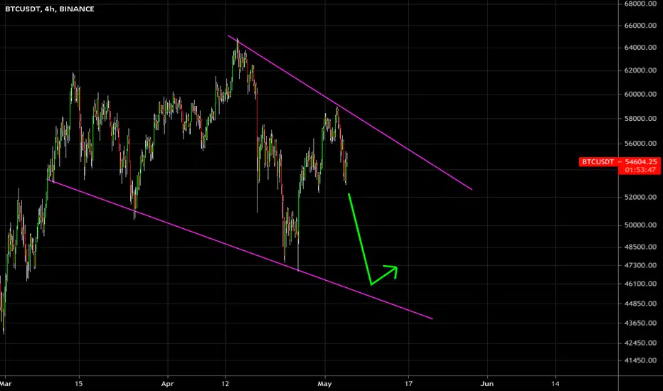 If the connect the two recent tops with the recent lows, we can construct a bearish channel. It might well be the case that BTC will follow this channel in the near term, potentially going for $45k soon.
