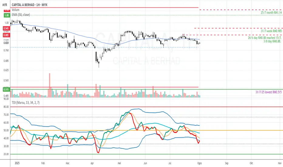 walau bar naik ke RM0.88 seperti yg kita hendak pd 3/8/25 tapi ia berlaku hampir dua bulan. PL buat LL kedua 31/7/25 selepas pertamanya 23/6/25. kali ketiga PL buat HL 27/8 diikuti bar putih (tutup atas ema25) dan volume besar muncul 28/8/25. kemudian bar perlahan turun dan sideway (julat RM0.795 - RM0.81) tapi PL atas MBL. bar putih (tutup atas ema25) dan vol besar lagi sekali muncul 24/9/25 diikuti bar hitam tutup atas ema 25 dgn PL lintas top bollinger. 26/9/25 bar putih lonjak 7 sen...Penafian