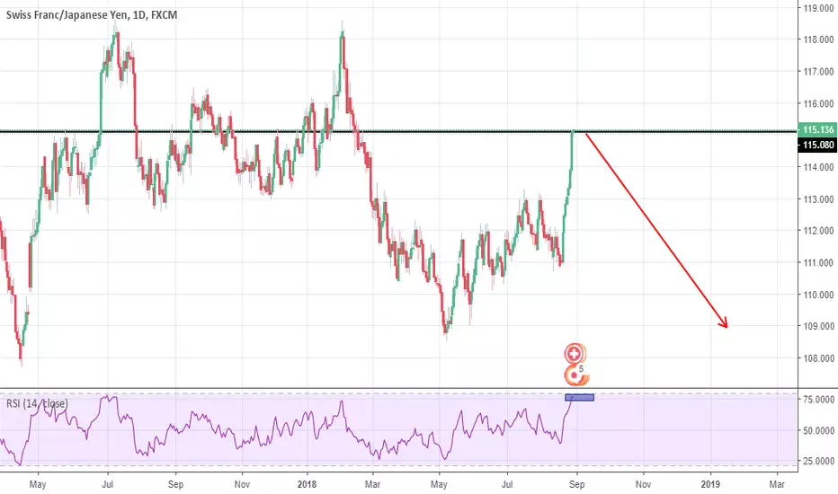 CHFJPY is on the resistance level and reversal is very much possible RSI is on the Oversold level and on lower time frames heavy divergence is possible. Short idea is on the board.