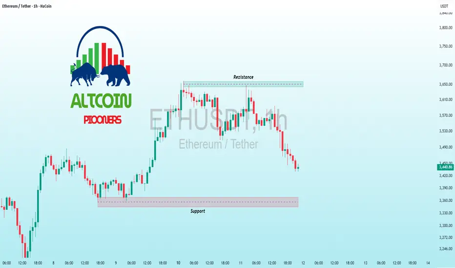 ETH's 1H chart in correction mode, rejecting resistance at 3.66k and now probing support ~3.32k at 3.45k—strong hold here could spark bounce to 3.50k retest, but breakdown risks deeper to 3.20k on sustained selling.