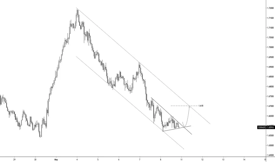 On this forex pair price is in a descending channel. We have found a support structure and price has eld it three times. If price breaks bullish then the 1.618 is a good target for longs. We will look for longs at the retest of support.