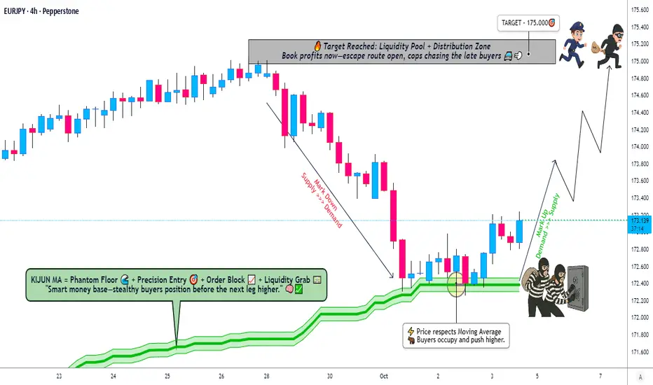 🚨 Thieves aka (Smart traders) of the Forex Market, Assemble! 🚨Get ready to pull off a slick bullish heist on EUR/JPY with this Thief-Style Trading Plan! We're leveraging a Kijun-Sen pullback to spot a juicy demand zone where the bulls are loading up to push prices higher. Let’s break into the market with style, precision, and a sprinkle of humor! 😎