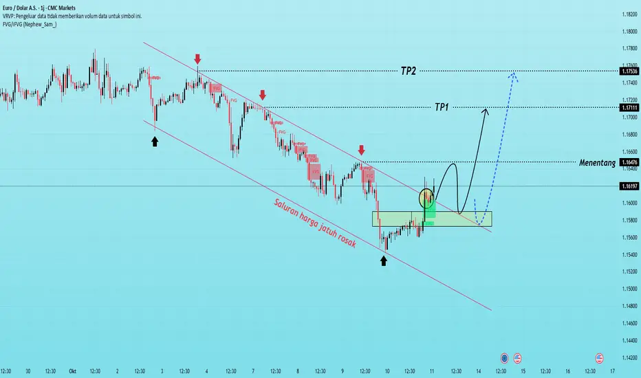 EURUSD di pasaran CMC secara rasmi memecahkan struktur kejatuhan multi-sesi, apabila harga keluar dari saluran saluran yang jatuh dan berjaya menguji semula kawasan sokongan 1.1580. Struktur harga secara beransur -ansur beralih ke pengumpulan ke atas, mewujudkan asas untuk pemulihan awal minggu depan.