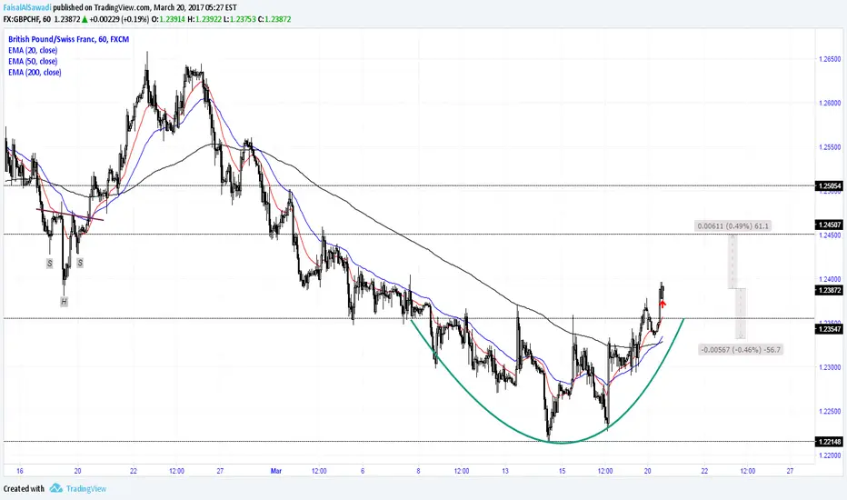 The pair formed round bottom bullish reversal signal after the dominant downtrend, long entry targeting the next resistance area..