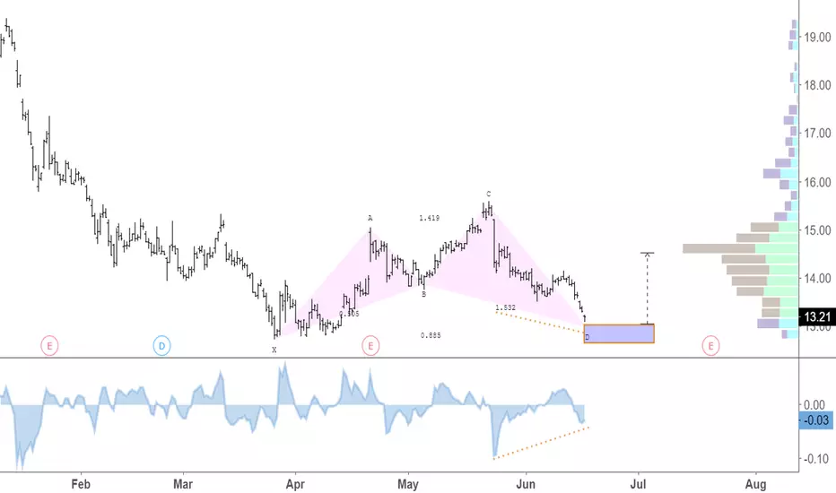 Well measured bullish shark with bullish divergence. Waiting on price to stabilize and change momentum to the upside before entering any positions.