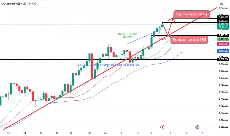 Looking at the 4-hour market trend, we are watching for short-term support at 3920, with a focus on the 3895-3900 support level. The bulls are rising strongly and there is no end in sight. Trading strategies should focus on buying on pullbacks. For intermediate positions, we should be cautious in chasing orders and patiently wait for key entry points. I will provide detailed trading strategies during the trading session, so please pay attention.