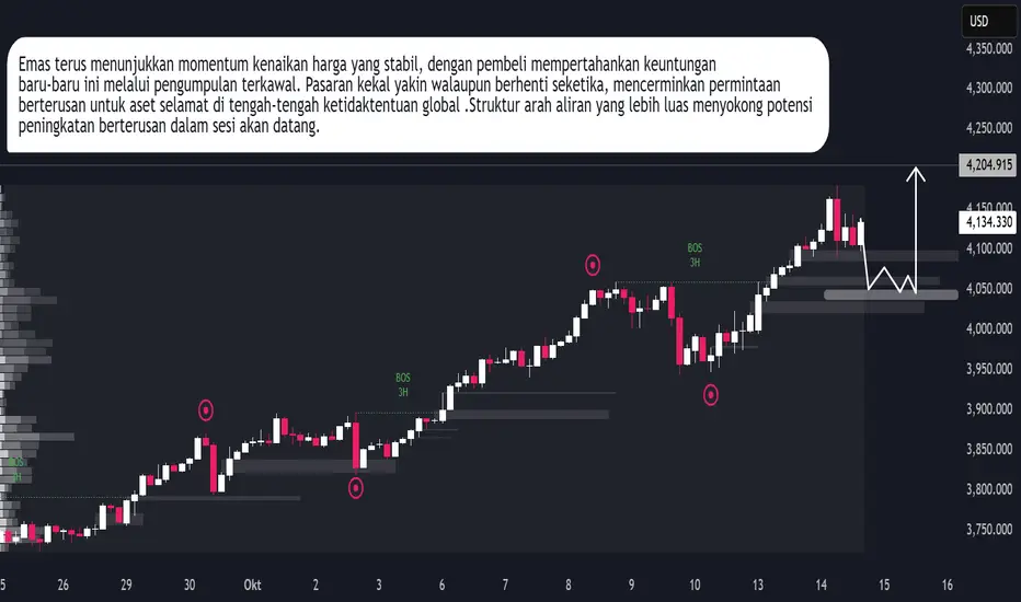 Emas terus menunjukkan struktur kenaikan harga yang kukuh dan teratur, dengan momentum yang dikekalkan oleh gabungan keyakinan pasaran dan kedudukan makroekonomi. Pemacuan menaik yang konsisten logam itu mencerminkan permintaan yang berterusan untuk keselamatan di tengah-tengah kebimbangan inflasi yang berlarutan dan ketidaktentuan sekitar pemulihan ekonomi global. Pengumpulan institusi kekal kelihatan, menunjukkan bahawa pelabur berada di hadapan potensi pelarasan dasar dan turun naik mata wang.