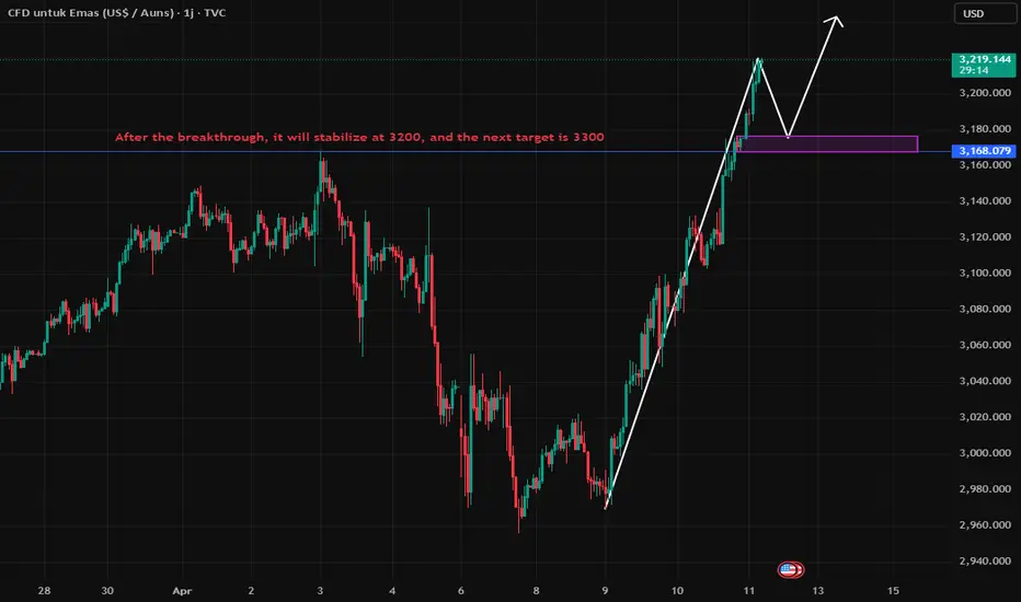 Hari ini, emas telah meningkat kepada 3220 dalam sesi Asia. Apabila permintaan terhadap aset selamat meningkat, kebanyakan orang memberi lebih perhatian dan bersedia untuk membeli emas. Berdasarkan arah aliran pasaran, emas telah pun berdiri teguh pada paras tertinggi sebelumnya iaitu 3167, dan aliran kenaikan harga telah diteruskan. Dalam beberapa hari kebelakangan ini, kenaikan harian emas telah melebihi 100 dolar AS. Saya percaya bahawa kenaikan harga emas hari ini tidak akan terlalu kecil, dan emas hari ini dijangka terus bergerak ke arah tanda 3300. Tunggu pembetulan semasa sesi dan pergi lama dengan trend!