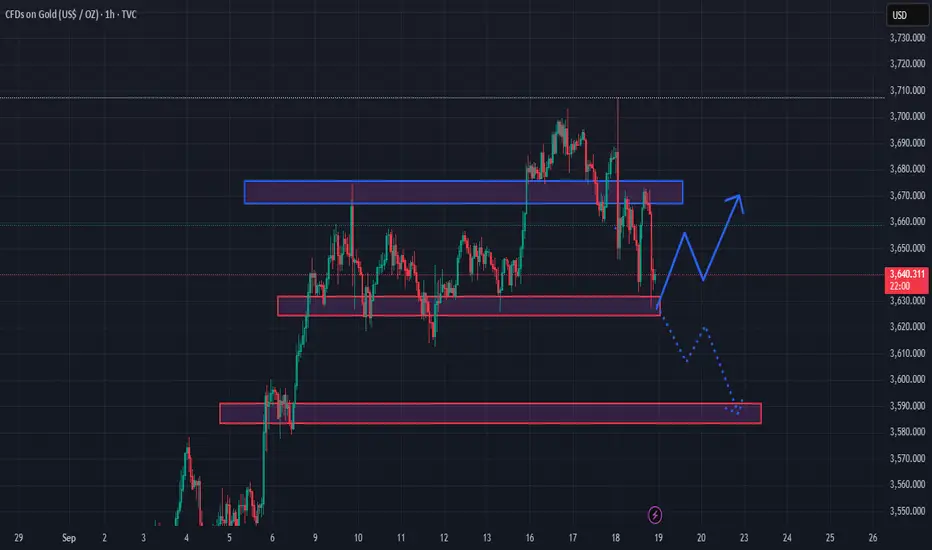 If price holds the 3,630 – 3,640 support → it may rebound and retest the resistance at 3,670 – 3,690. A strong breakout above 3,700 would confirm continuation to the upside.