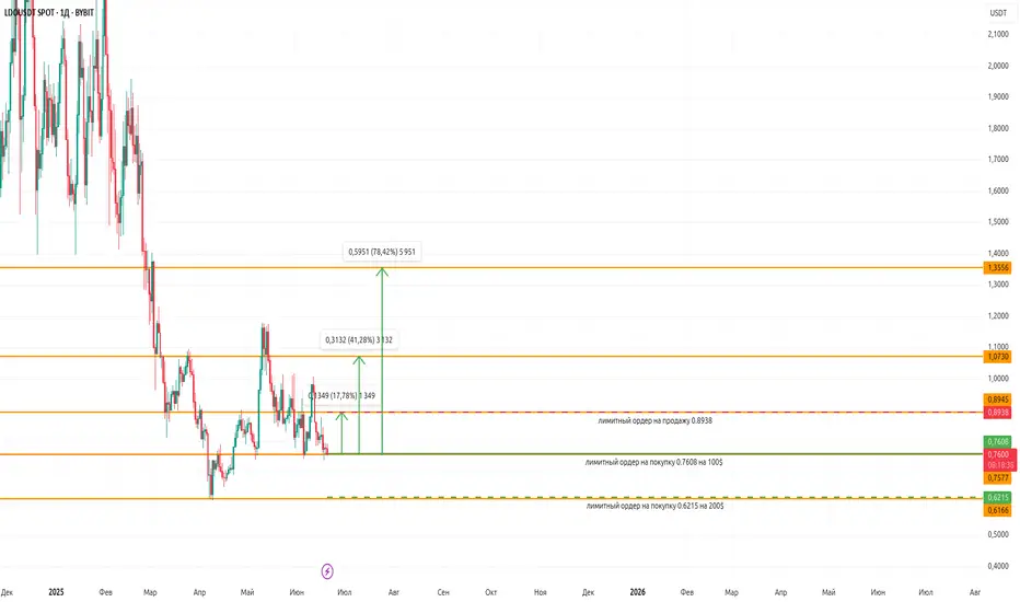 Сплошная зеленая линия моя точка входа (0.7608 100$).