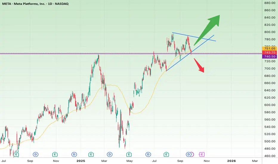 Key support: $740–$745 (aligned with the rising trendline and 50-day moving average).