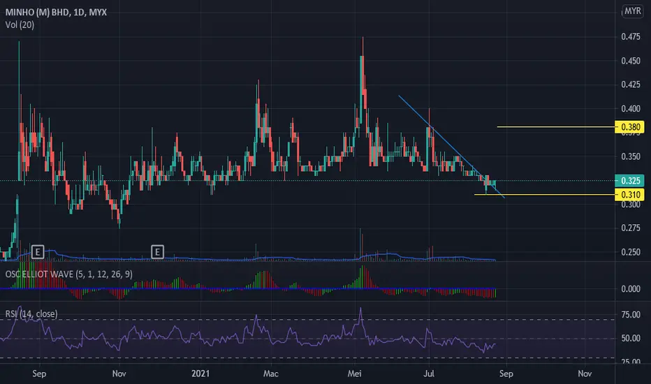 MINHO dilihat sudah berada pada paras sokongan dan mengikut RSI masih lagi berada pada paras yang menarik untuk belian. Ia juga dilihat mula memotong garis trend kebawah dan cuba untuk mengubah aras aliran.