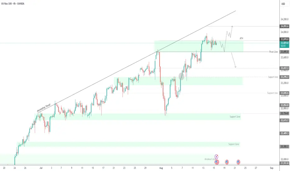 A 4H close above 23870 would shift momentum bullish toward 24090.