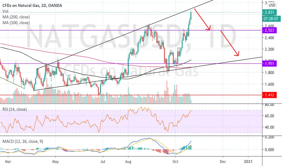 The natural gas graph clearly shows an expanding triangle and we are currently approaching its upper boundary.