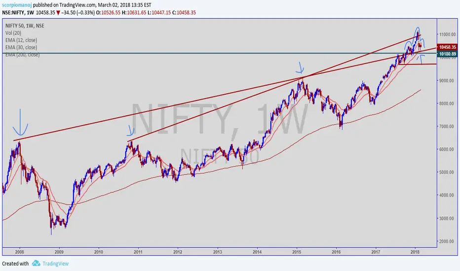 Conclusion : If nifty breaks below 10285, it is time to go short nifty / nifty related stocks with 30 week trailing ema as stops and exits.
