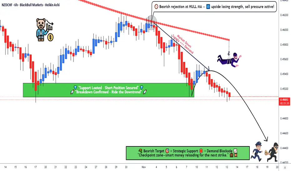 NZD/CHF Swing Trade Setup 🐻 | HULL MA Reversal & Support Breakout Confirmation! 🚨