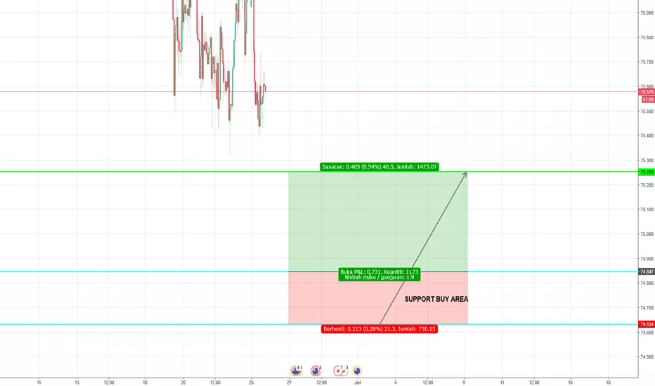 3. Kami telah mengenalpasti Support Buy Area pada paras harga 74.63 hingga 74.84.