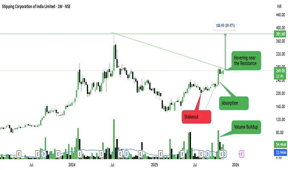 Shipping Corporation is displaying a clean **re-accumulation structure** after multiple shakeouts and strong absorption near 200 levels. The recent volume buildup hints that institutional players are quietly adding positions.