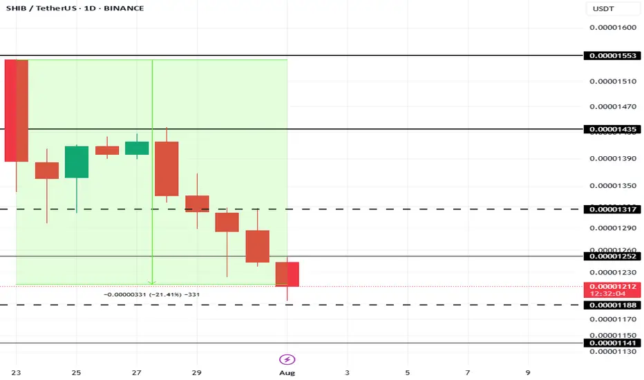 SHIBUSDT could lose the critical support level of $0.00001188, pushing the price down to $0.00001141 or potentially lower. However, if SHIB manages to hold onto its $0.00001188 support level, there is a possibility of recovery.