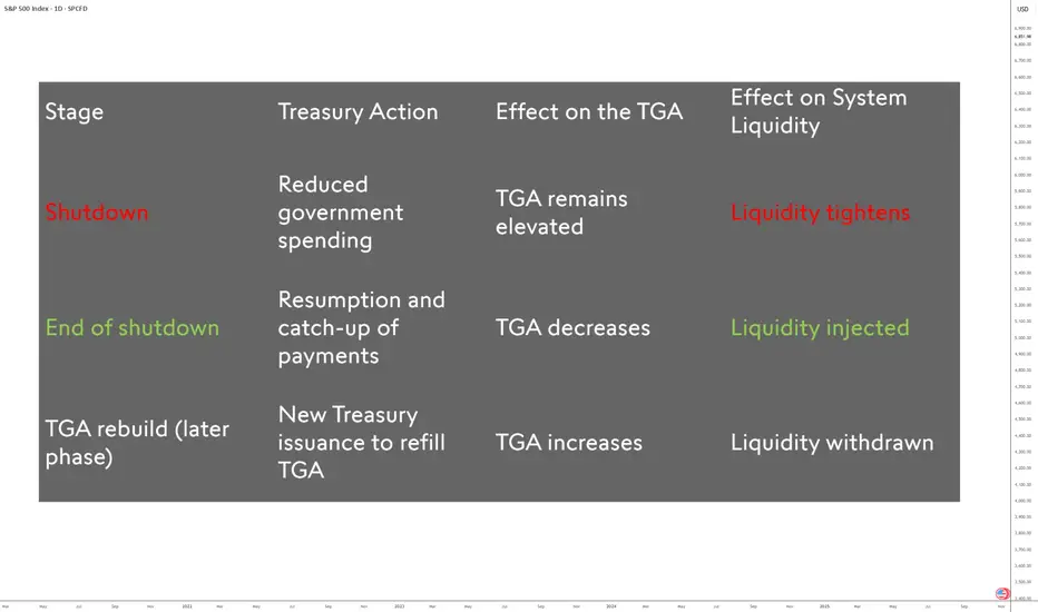 The end of a U.S. government shutdown is often interpreted as a mere political signal. Yet, from a financial perspective, this event can mark a major turning point for global liquidity. One of the most direct mechanisms through which this occurs is the Treasury General Account (TGA) — the U.S. Treasury’s main account at the Federal Reserve (Fed).