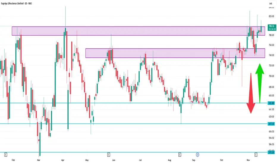 Longer-term upper band: ~ ₹ 842 (52-week high)