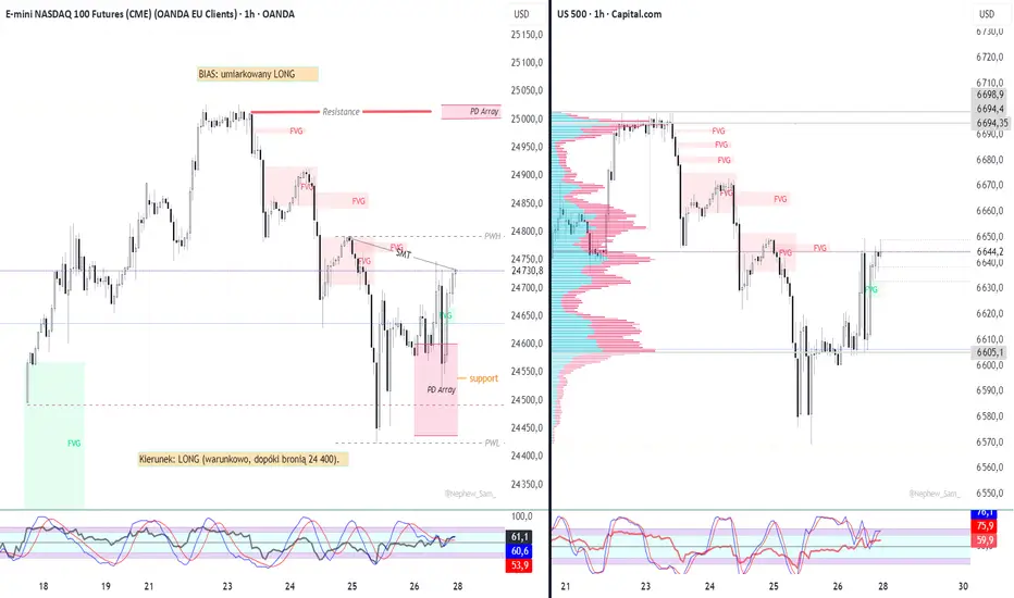 • Invalidation: akceptacja poniżej 24 400 w NY AM – wtedy BIAS zmienia się w defensywny SHORT do 23 700.