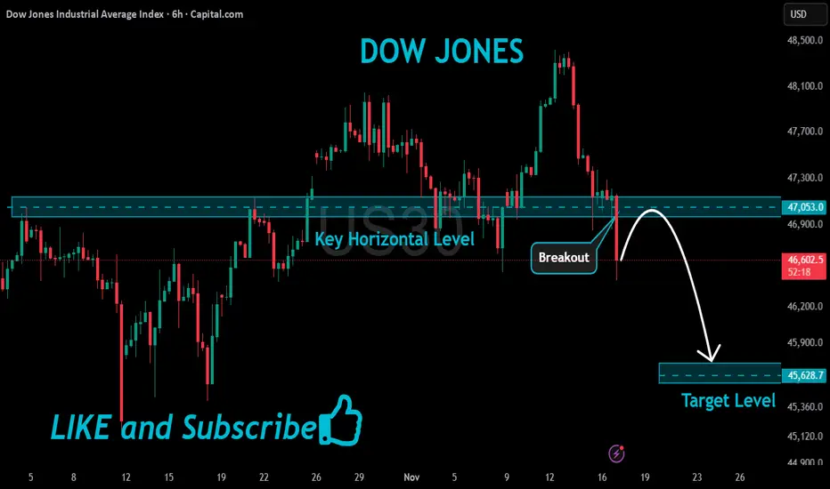US30 Bearish Breakout!