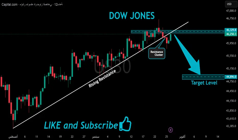 تجاوز مؤشر #US30 مناطق الدعم الرئيسية (مستويات الدعم الصاعدة والأفقية) بشكل سلبي، والتي تحولت الآن إلى مناطق مقاومة عند مستوى 46329.8. بعد ذلك، انخفض المؤشر وتراجع قليلاً يومي الخميس والجمعة. نظراً لتوقعنا بانخفاض المؤشر على المدى المتوسط، نتوقع استمرار هذا الاتجاه الهابط خلال الأسبوع القادم !