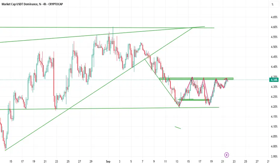 market dominance facing resistance, keep watch if the price doesn't close above the resistance level, we might see gain in price momentum in altcoins and if the market gets passed the resistance with a successive retest the altcoins might hit a downtrend keeping watch.