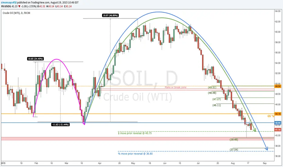 Given the massive and unexpected DOE inventory build this morning, I thought it would be worth highlighting this chart again. If we take oil's Fed/Mar moves: Up +10.65 (+24.45%) and Down -11.62 (-24.44%) and apply them to the March 18th low, we arrive at a dollar move target of 40.75 and a percentage move target of 36.80. Both are nice in range with a large neutral zone encountered in late '08/early '09 as well as fib extensions from the strongest counter-trend rally in late July.