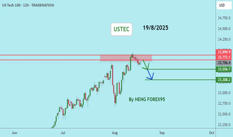 USTEC price is near the resistance zone 23772 - 238920. If the price cannot break through the 23920 level, it is expected that the price will likely go down in the short term. Consider selling in the red zone.
