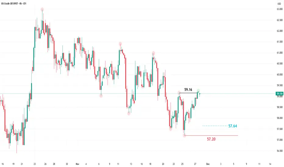 On the technical side, the price on the 4-hour timeframe has risen and formed a higher high above the 59.16 level, shifting the trend from bearish to bullish in the short to medium term.