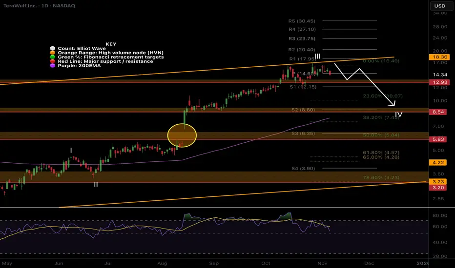 Due to the size of the rally wave IV could be deep. The usual 0.382 target is down at $8 where it would meet the daily 200EMA.