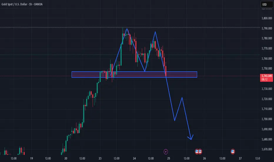 The price is now retesting the key support zone around 3,740 – 3,750 (blue box).