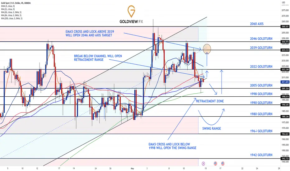 If the channel support holds, then we are likely to see a push up to test at least the channel half line. EMA5 cross and lock above the channel half line at 2039 will open the upper levels.
